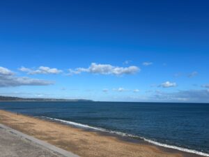 The sun is blazing so I take a walk into the village and then head down to Putsborough beach. Beautiful stretch of coastline but very busy at this time of year (it is July). The beach is packed with surfers, and families. The car park is rammed. There’s a café too.