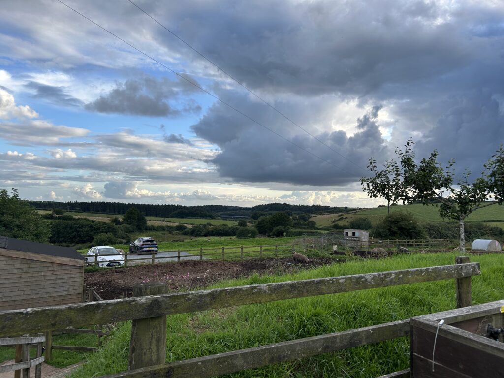 The rain doesn’t stop for the first day and night, and the temperature remains high. It’s a haven for insects, especially on a working farm. Nevertheless, it is an enjoyable stay and somewhere to return to.